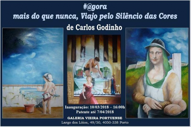 É uma exposição que nos leva a uma pequena viagem, no tempo, por detrás do silêncio enigmático do Convento onde se apresenta o trabalho de Carlos Godinho. Os seus trabalhos levam-nos por caminhos do imaginário e das figuras carregadas de simbolismo, onde as cores e formas surreais ganha predominância.